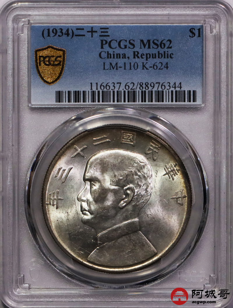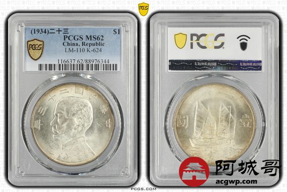 Lot:11 黄油原光 二十三船洋 PCGS MS62