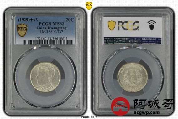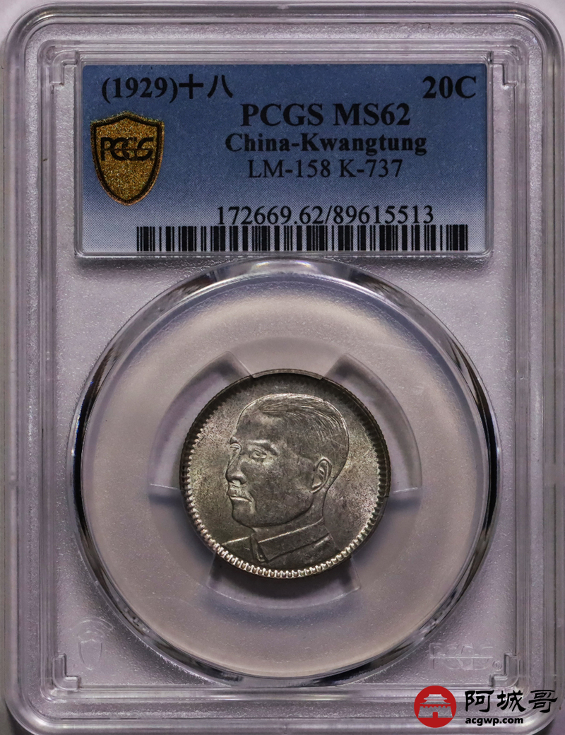 Lot:40 黄油原光 民国三十八年广东孙像贰豪 PCGS MS62