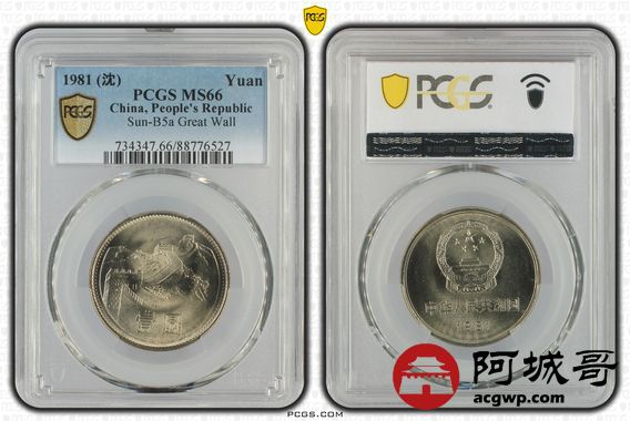 Lot:38 1981年黄油原光 长城币壹圆 PCGS MS66