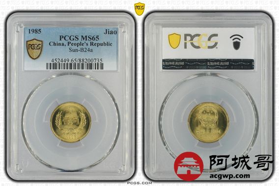 Lot:45 1985年长城币一角PCGS MS65