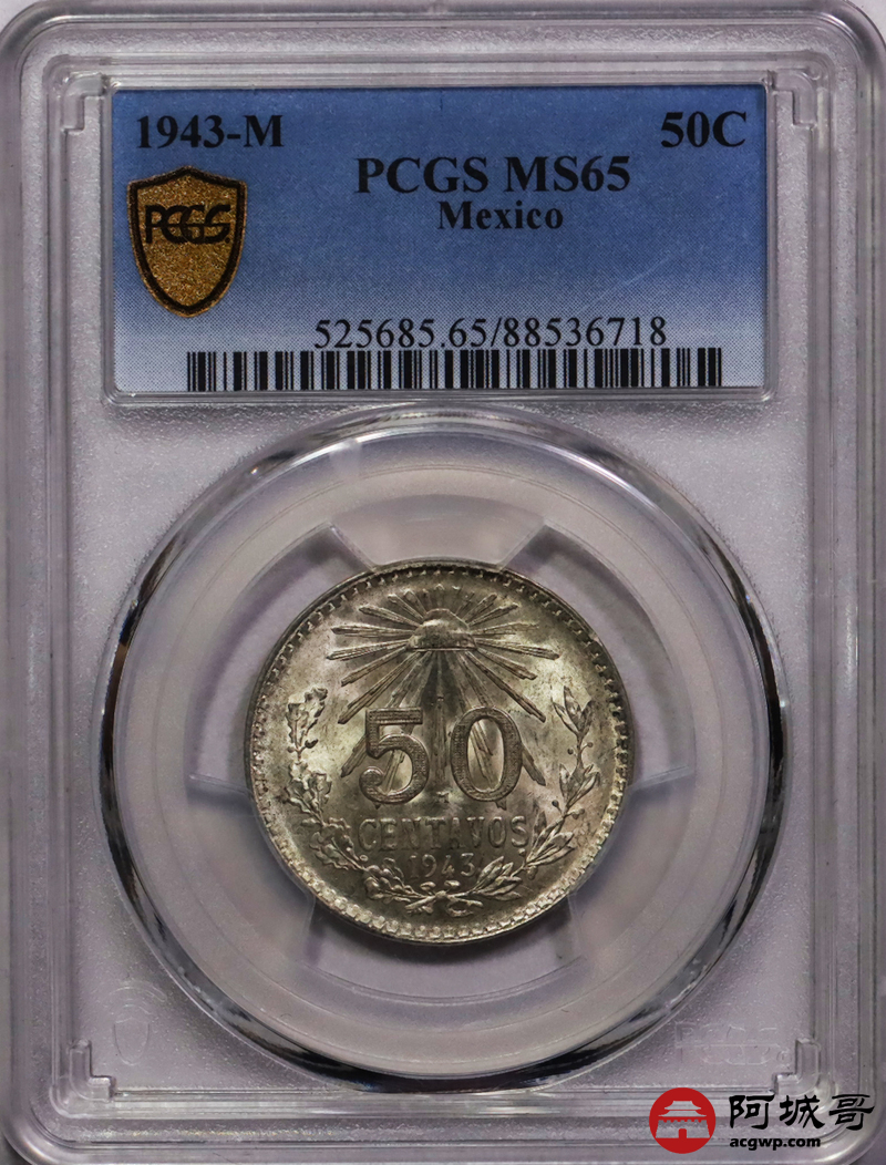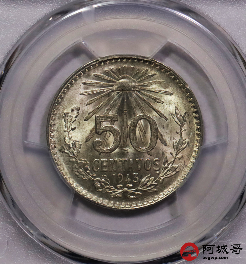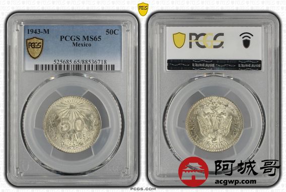 Lot:43 1943M墨西哥鹰洋50CPCGS MS65
