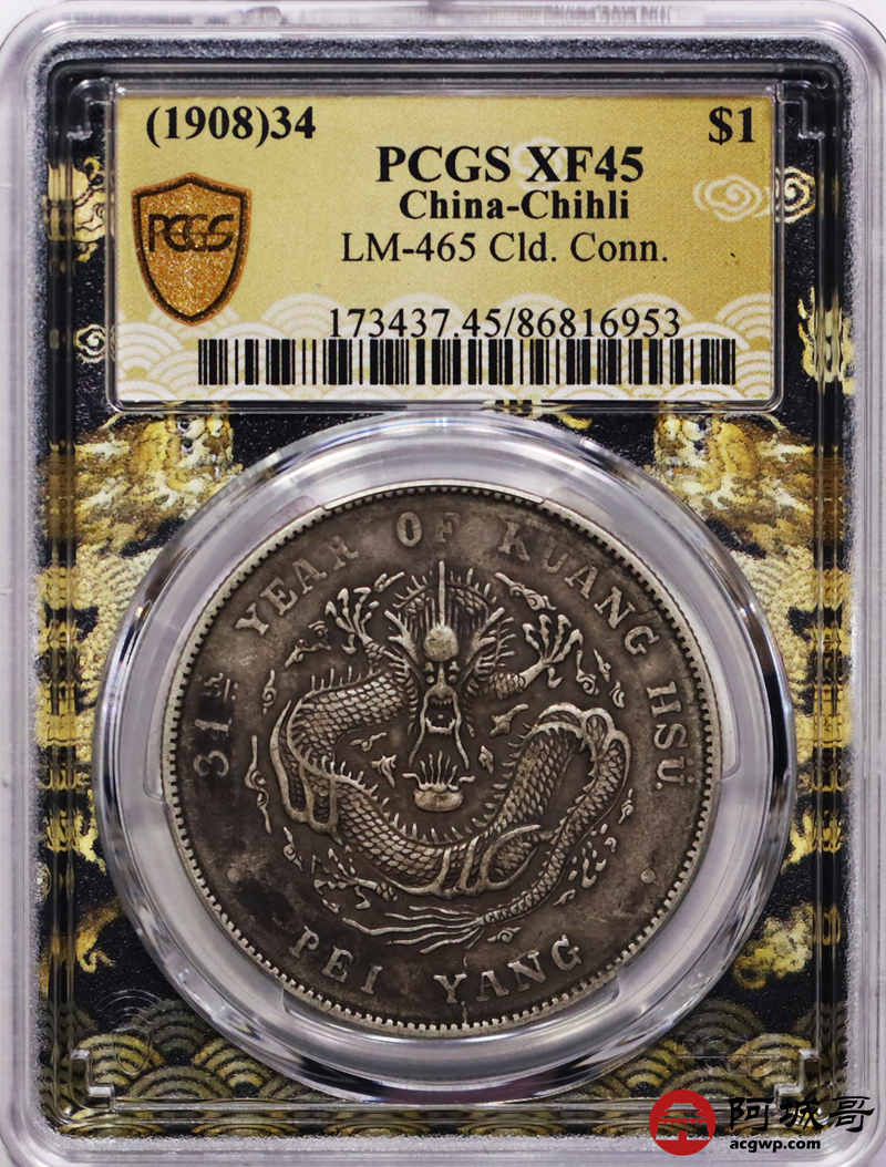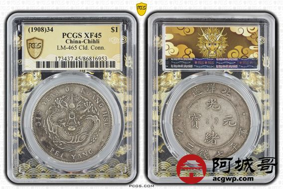 Lot:16 原味老包浆 北洋34七钱二分 PCGS XF45