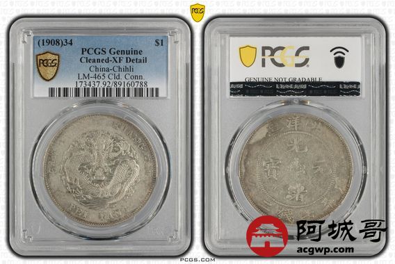 Lot:27 深打 满龙鳞北洋34七钱二分 PCGS XF