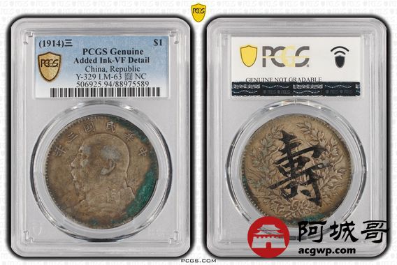 Lot:32 原味老包浆 三年大头 老寿字 PCGS VF