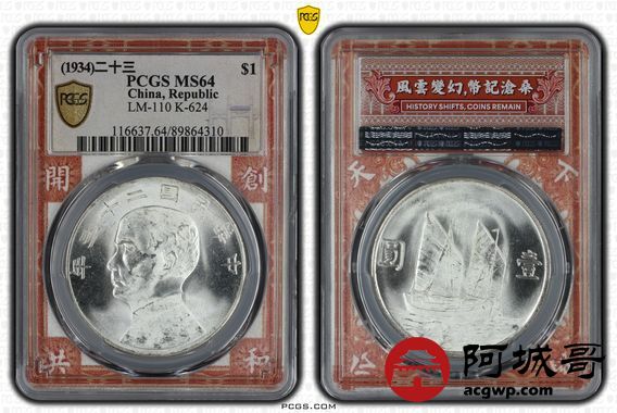 Lot:8 黄油原光 二十二年船洋 PCGS MS64