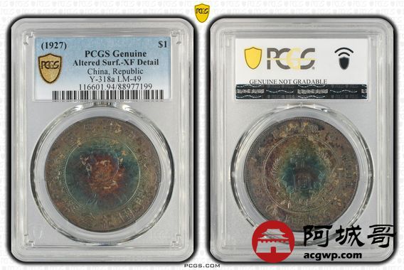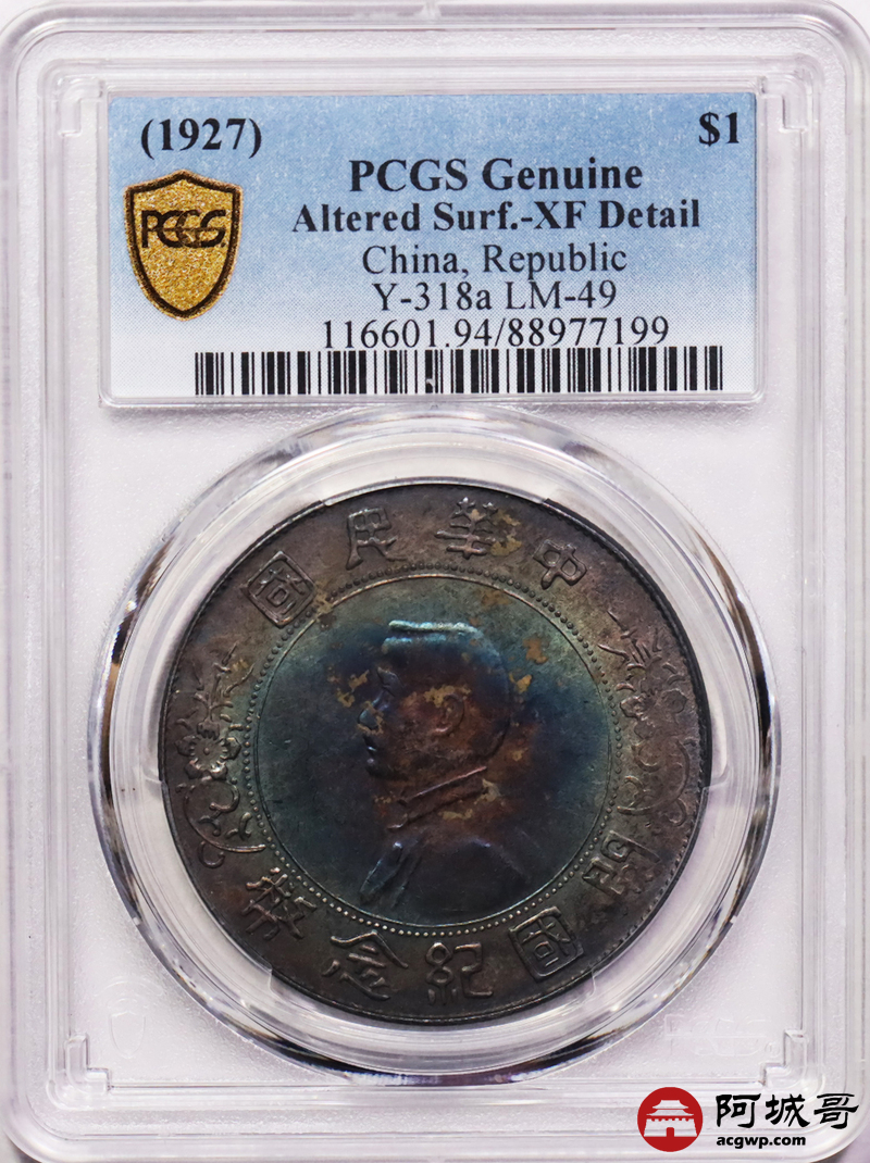Lot:31 五彩包浆 孙像小头壹圆 PCGS XF