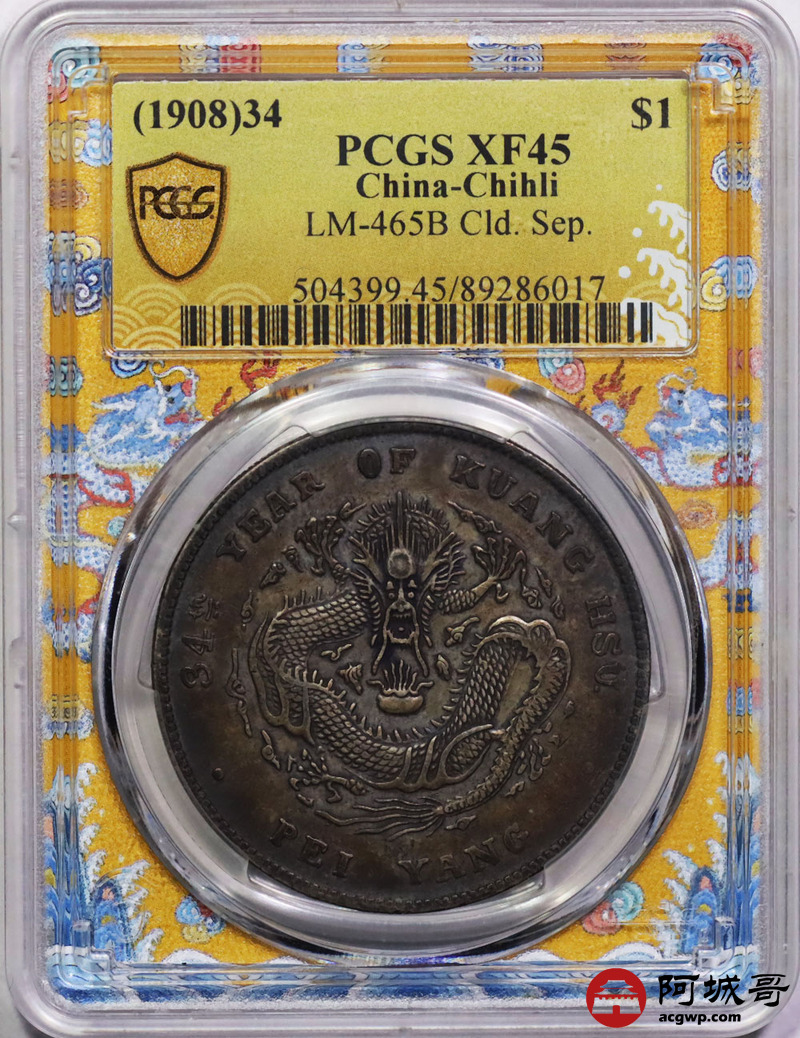 Lot:14 深打 传世老酱彩 北洋34七钱二分 开云版 味道极佳 PCGS XF45