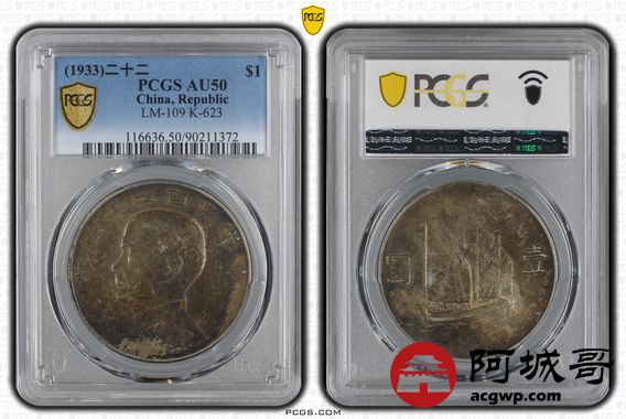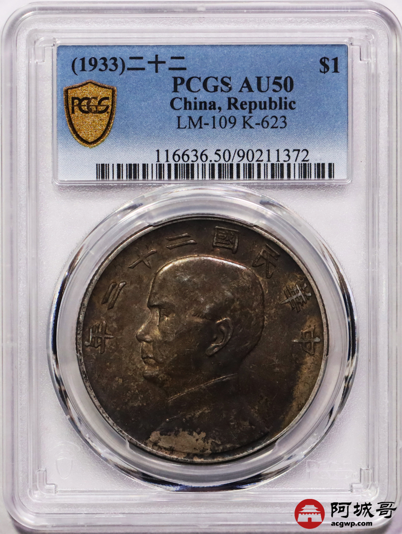 Lot:13 原味 酱彩 二十二年船洋 PCGS AU50