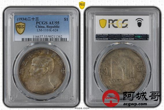 Lot:14 原味 酱彩 二十三年船洋 PCGS AU55