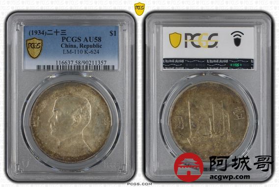 Lot:15 原味五彩 二十三年船洋 PCGS AU58