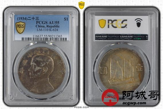 Lot:11 原味酱彩 二十三年船洋 PCGS AU55