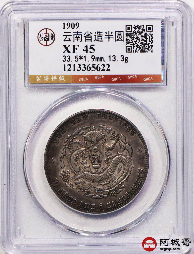 Lot:44 深打酱彩 老云南宣统三钱六分 公博 XF45