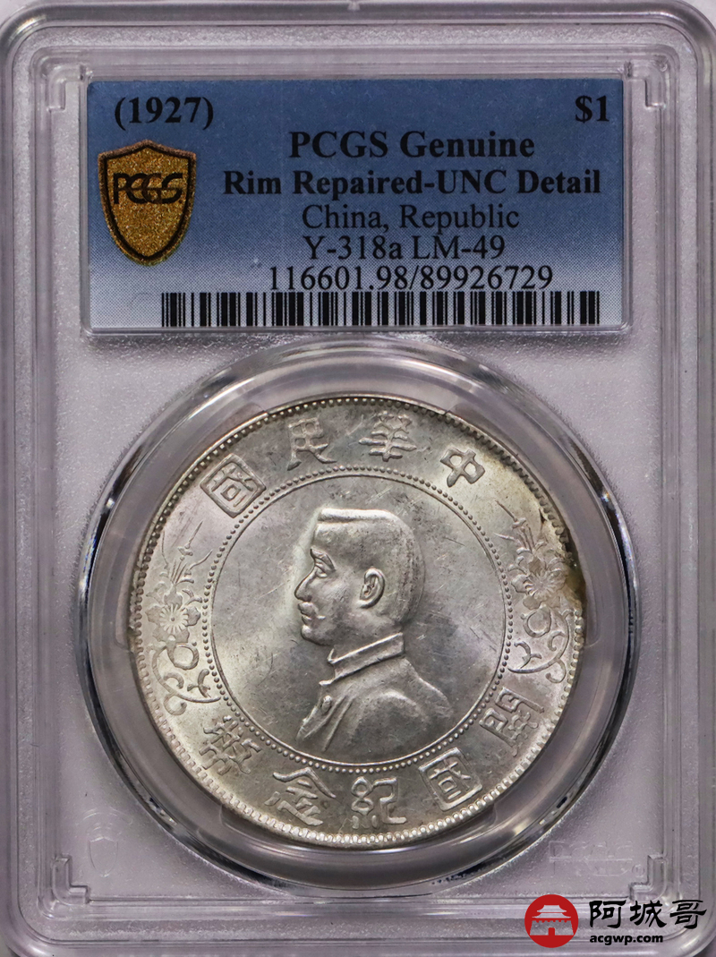 Lot:19 原光 孙像小头壹圆点草版 PCGS UNC