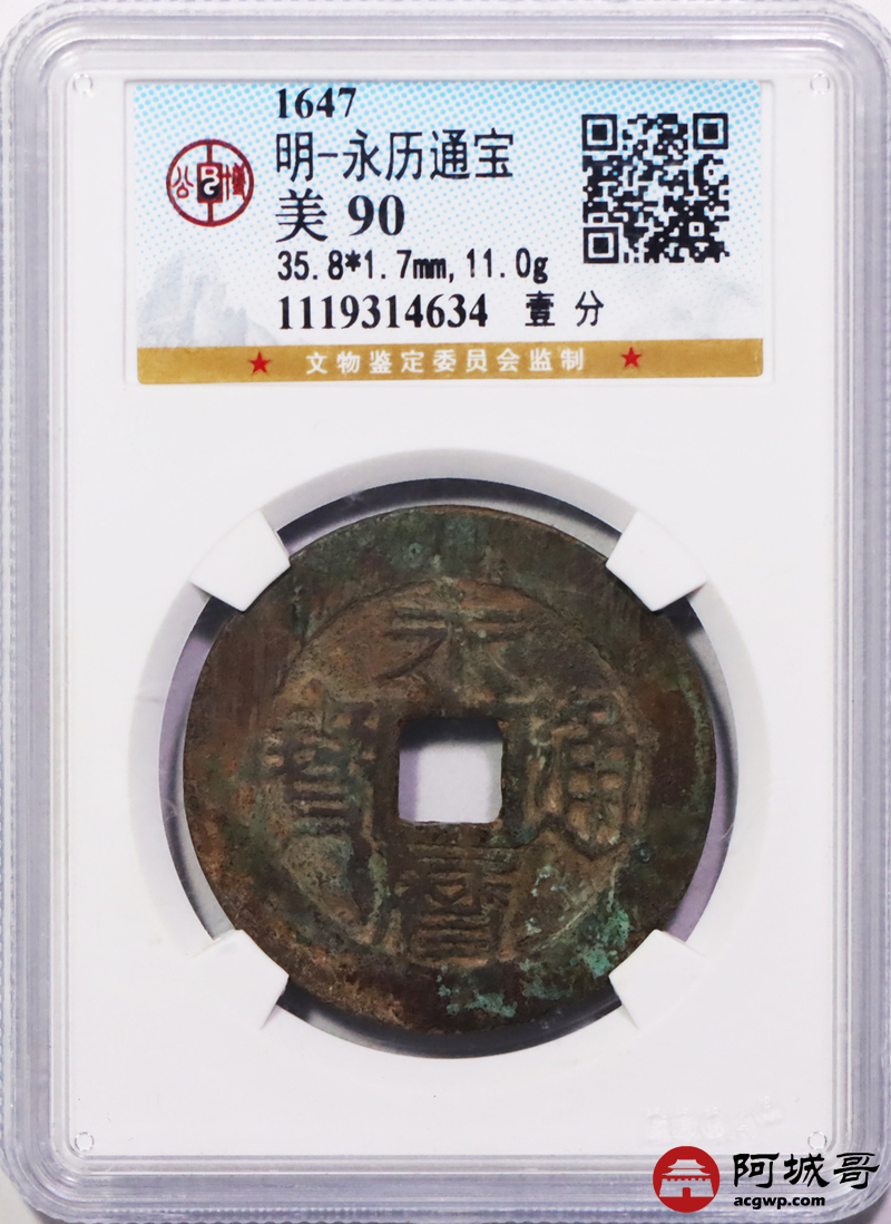Lot:32 明永历通宝 壹分 公博 美90