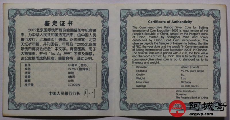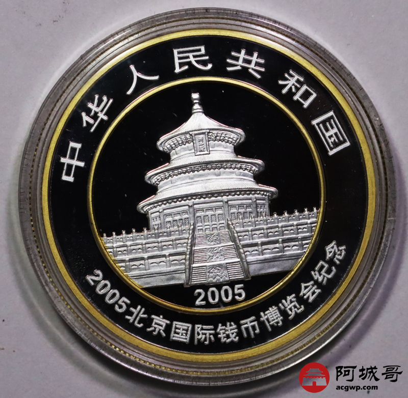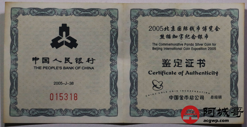 Lot:26 2005年北京国际钱币博览会1盎司熊猫加字纪念银币原盒带证