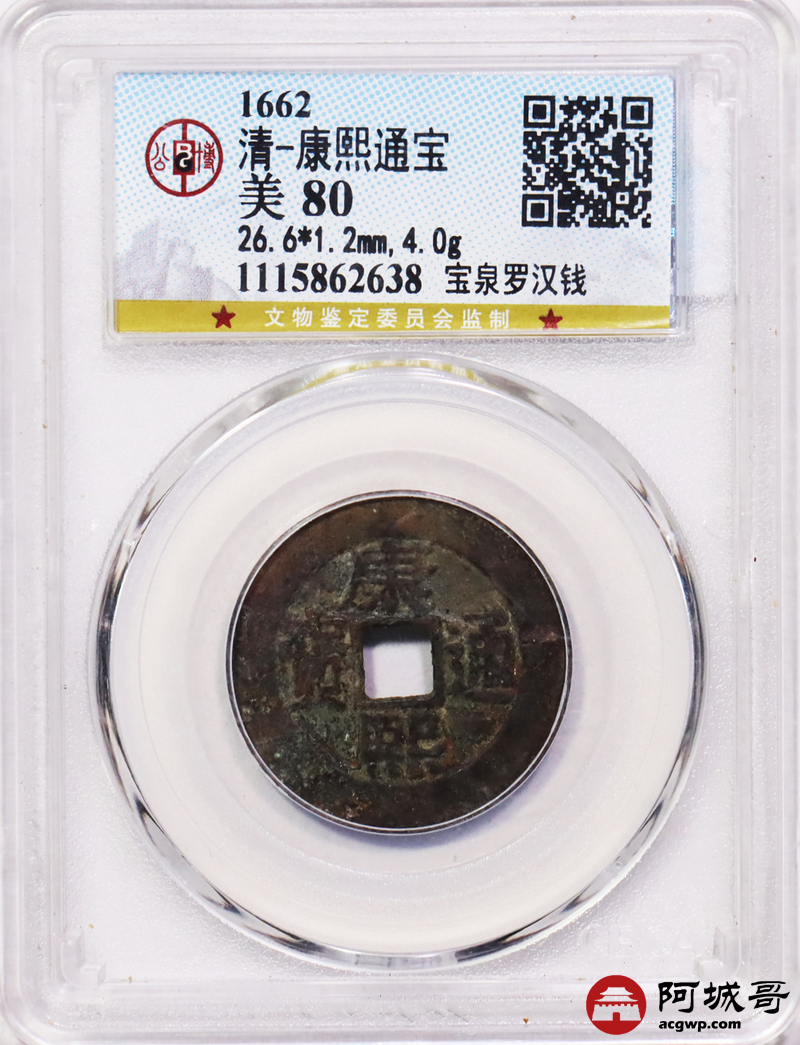 Lot:14 原味老包浆 康熙通宝罗汉钱 公博 美80