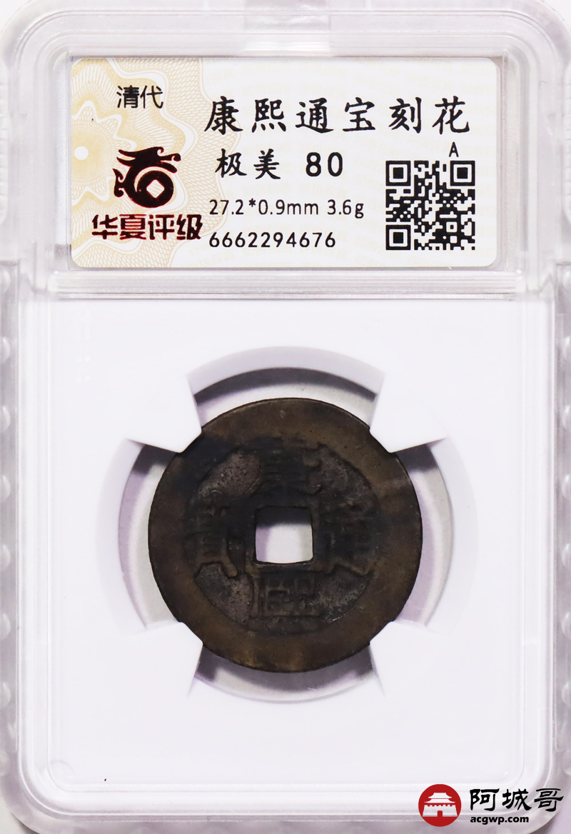 Lot:47 清-康熙通宝 刻花 华夏极美80