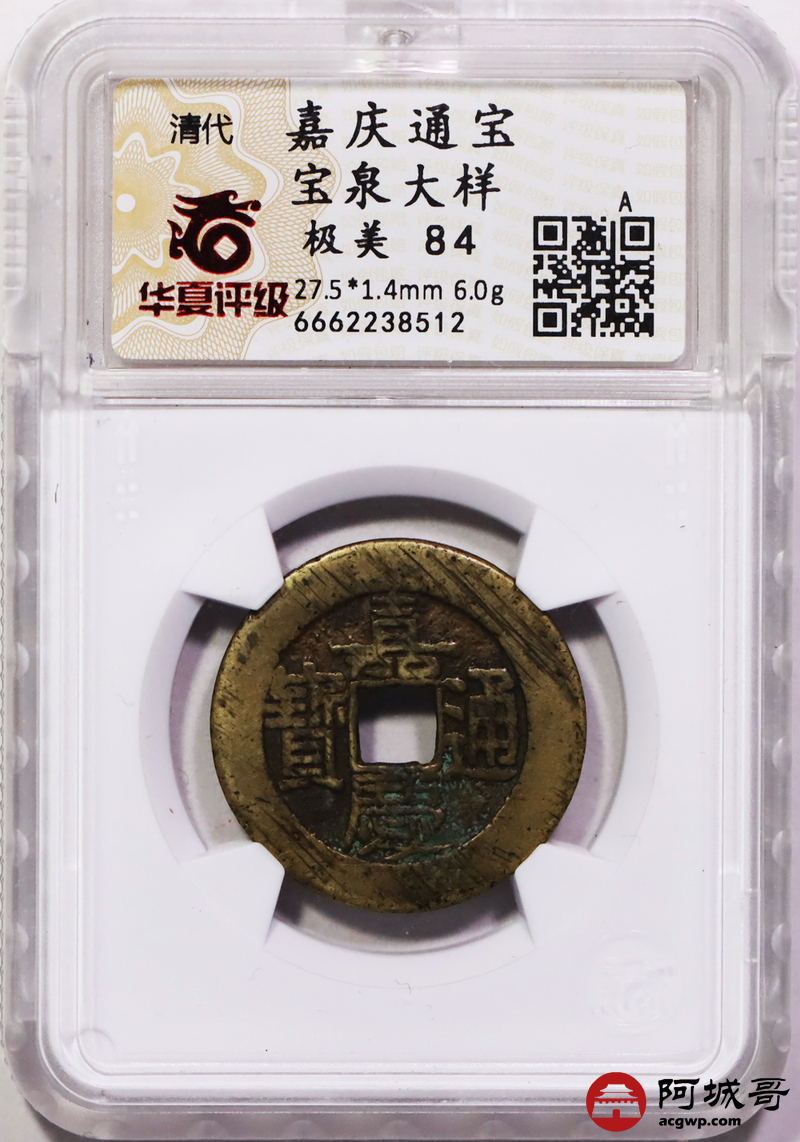 Lot:50 嘉庆通宝 宝泉大样 华夏评级 极美84