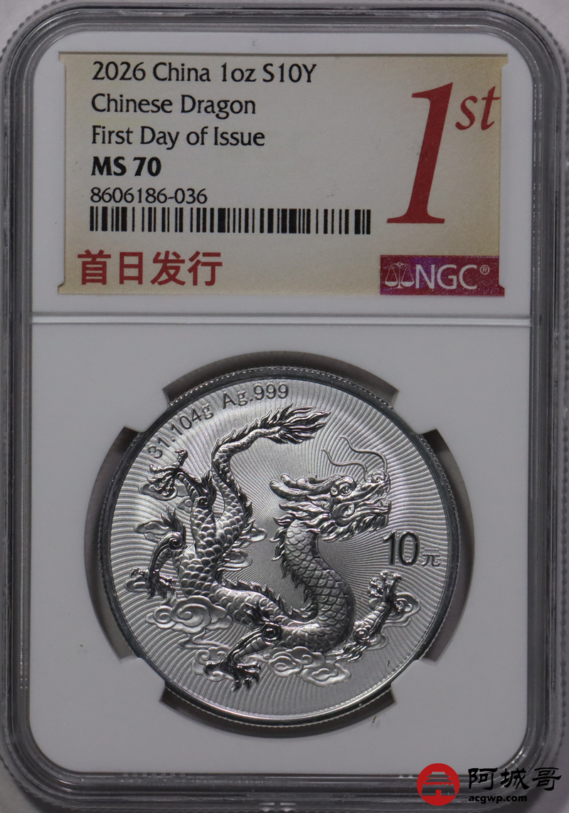 Lot:25 2026年中国龙银币 NGC MS70首日