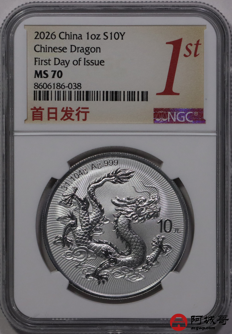 Lot:23 2026年中国龙银币 NGC MS70首日