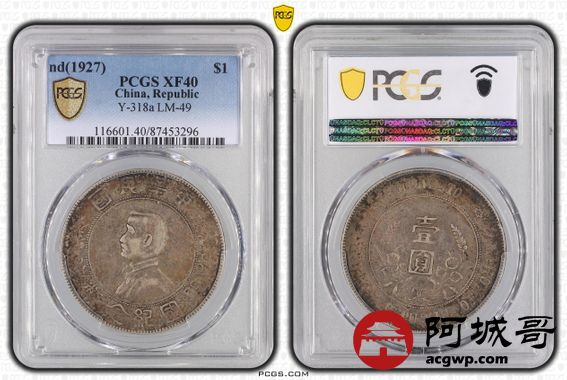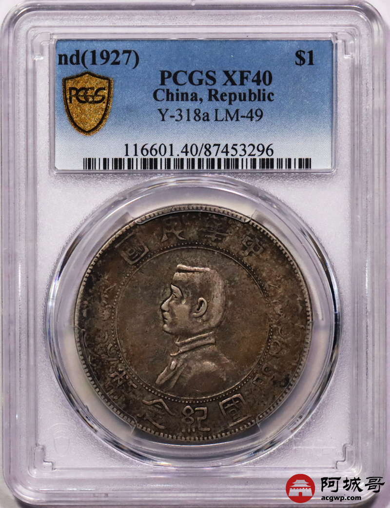 Lot:1 原味老包浆 孙像小头壹圆 PCGS XF40