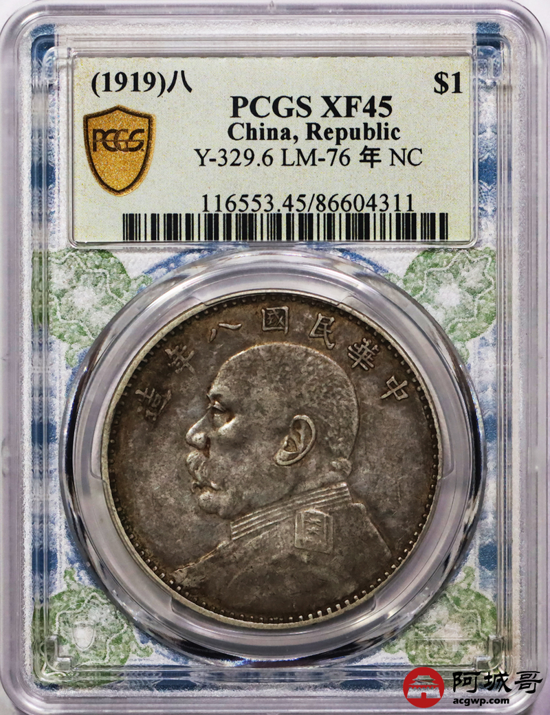 Lot:20 原味老包浆 八年大头壹圆 PCGS XF45