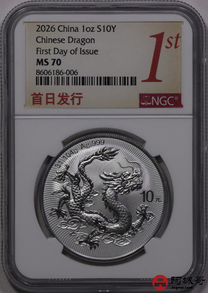 Lot:30 2026年中国龙银币 NGC MS70首日标倒置号