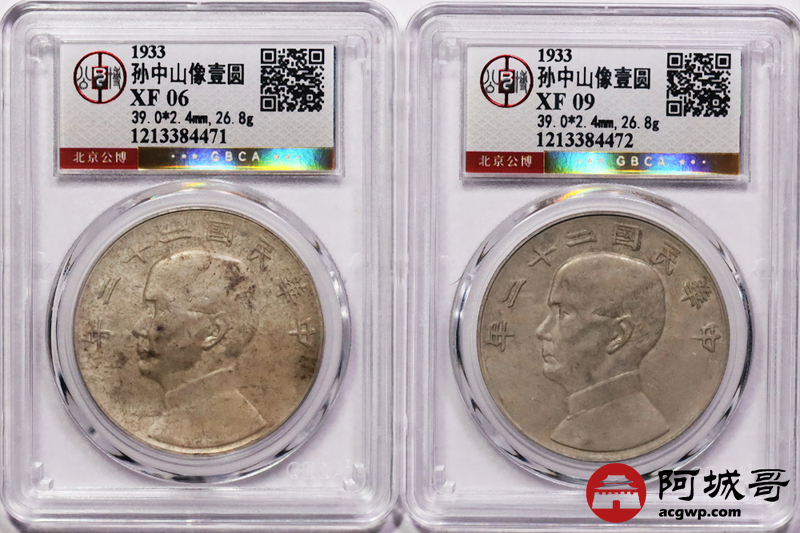 Lot:31 民国二十二年船洋 公博 XF06 XF09两枚