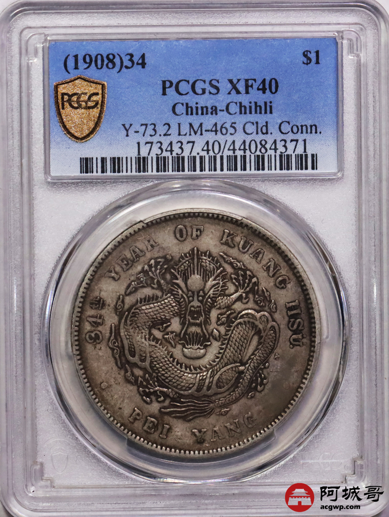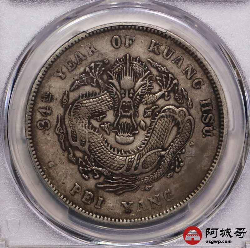 Lot:17 原味老包浆 北洋34七钱二分 短尾龙 PCGS XF40