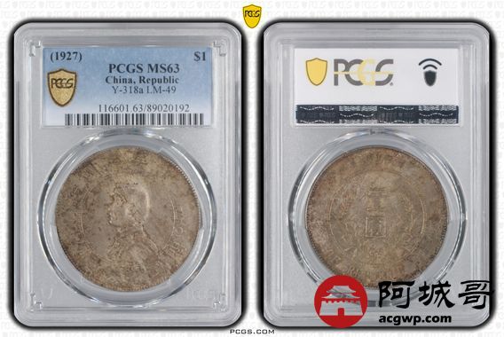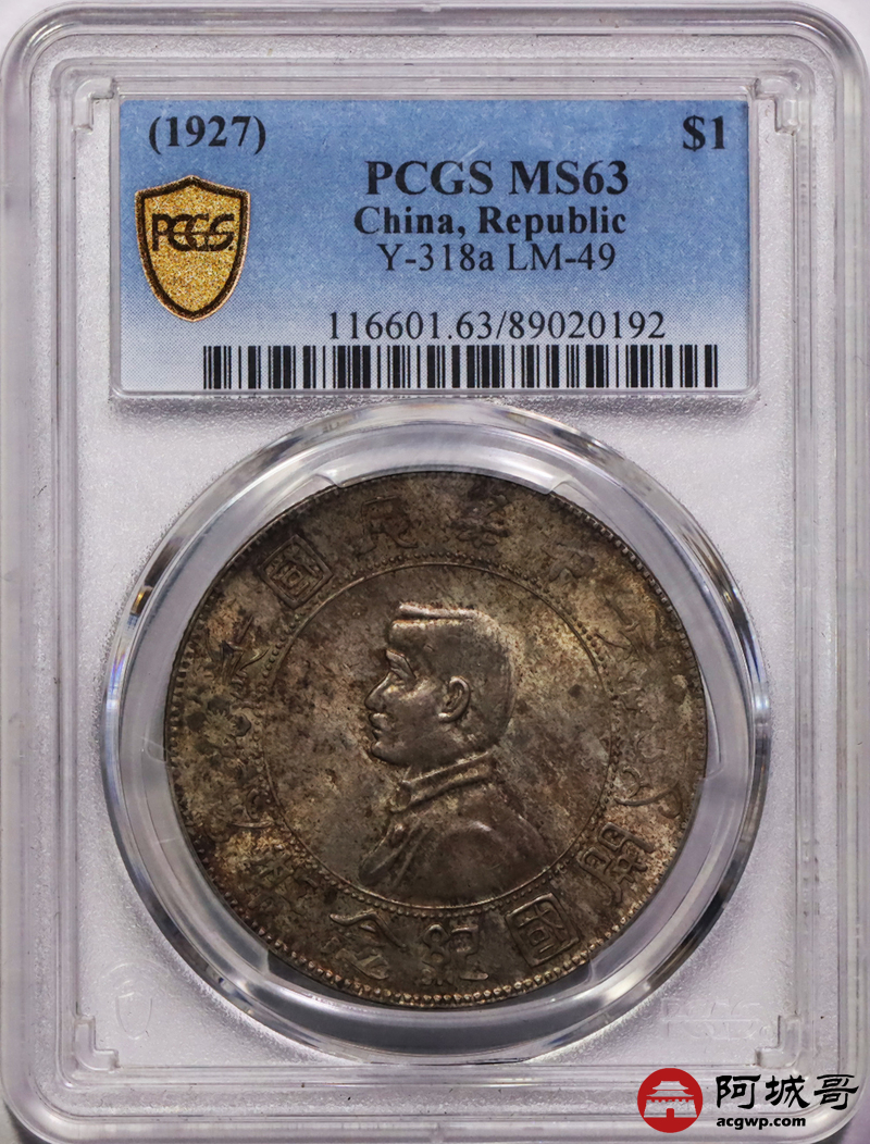 Lot:5 原味 黄油彩转光 孙像小头壹圆 PCGS MS63