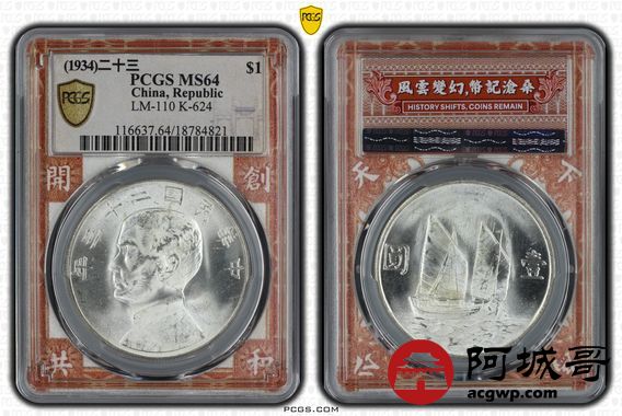 Lot:25 车轮转光 二十三年船洋 PCGS MS64
