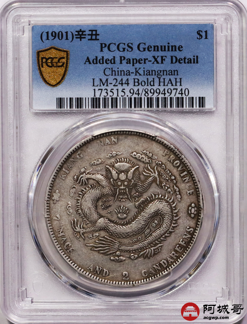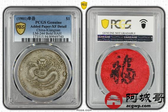 Lot:20 原味老包浆 江南辛丑七钱二分 福字贴 PCGS XF