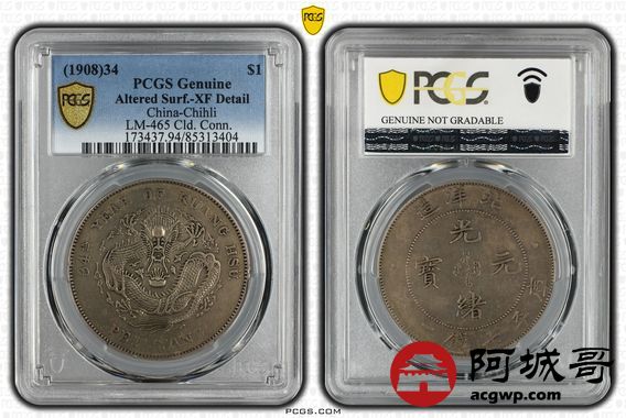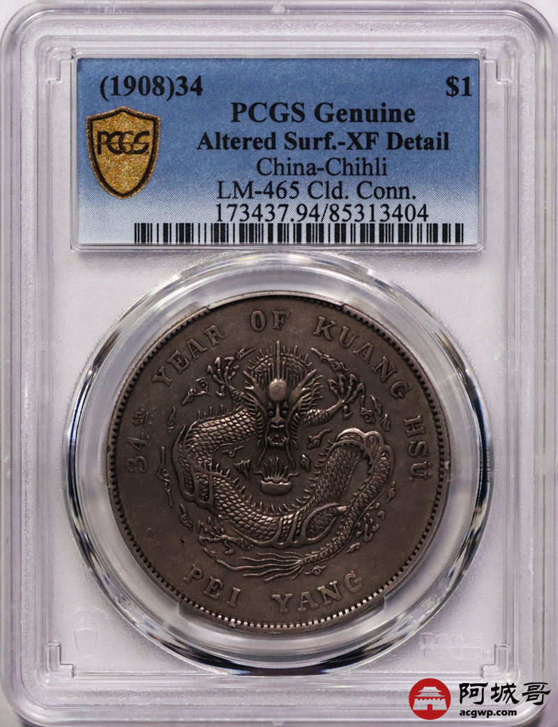Lot:21 深打 淡彩底板 北洋34七钱二分 PCGS XF