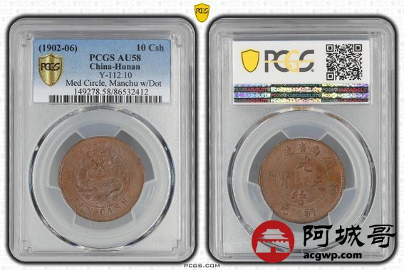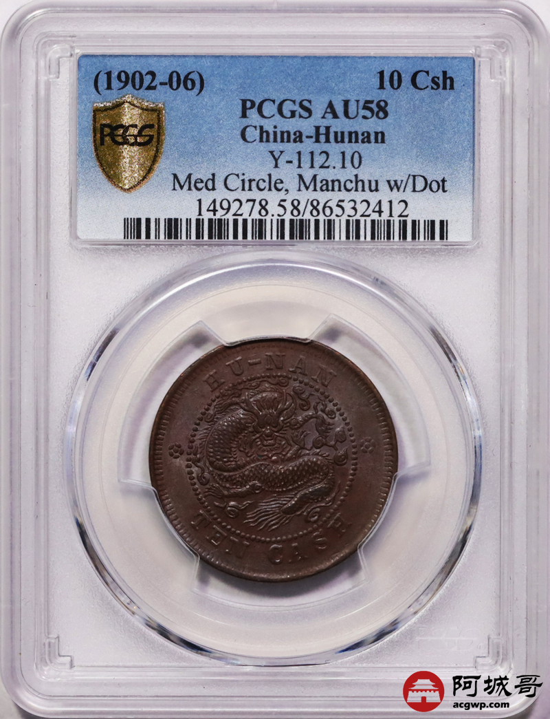Lot:4 原光 湖南光绪当十 PCGS AU58