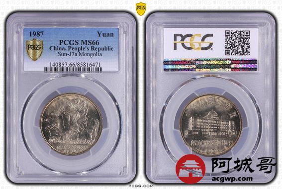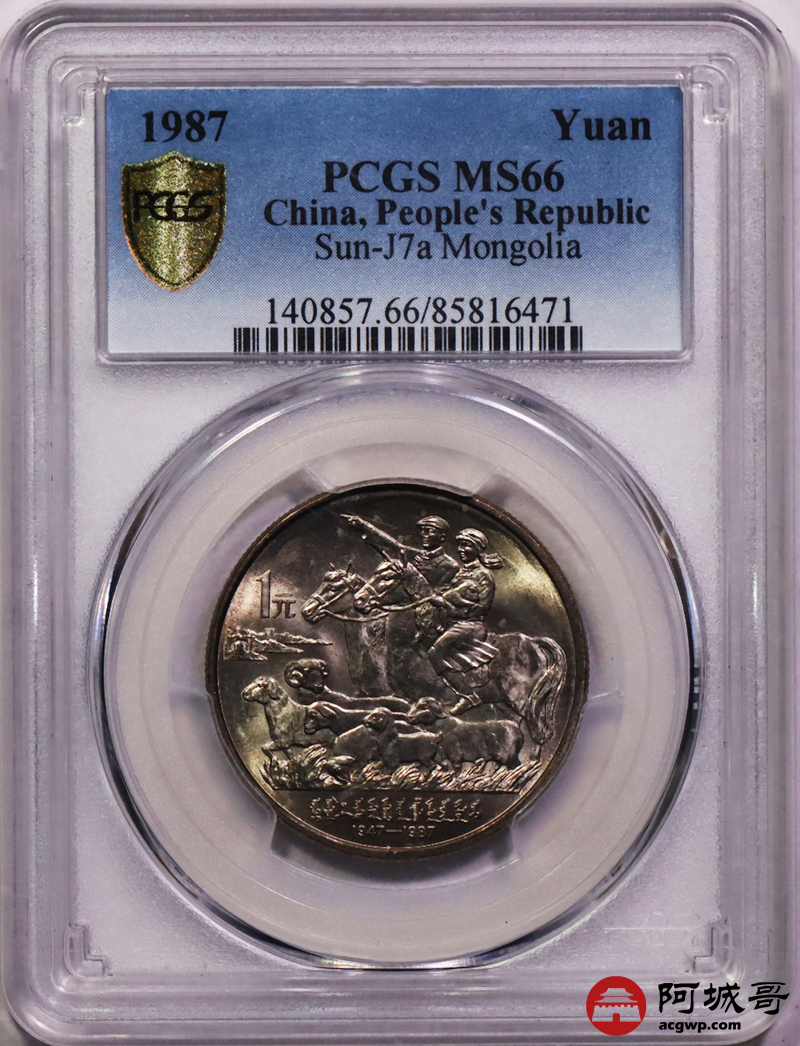 Lot:41 1987年内蒙古自治区成立40周年纪念币 PCGS MS66