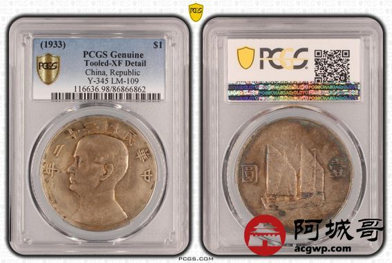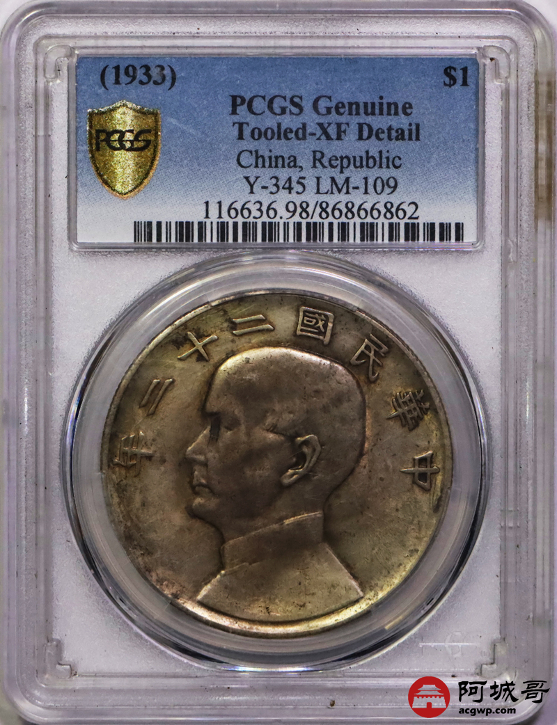 Lot:1 黄油彩 二十二年船洋 PCGS XF