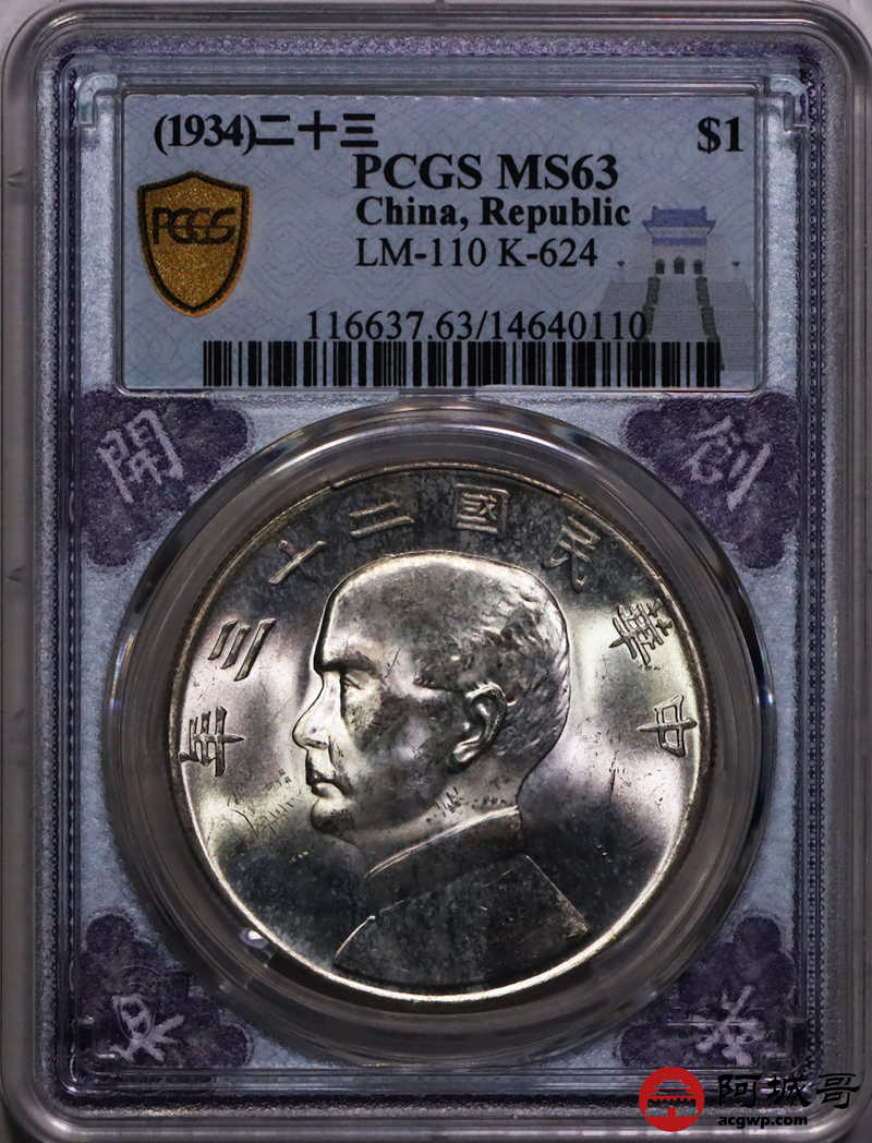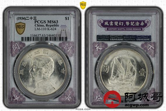 Lot:16 原色曝光 二十三年船洋 PCGS MS63