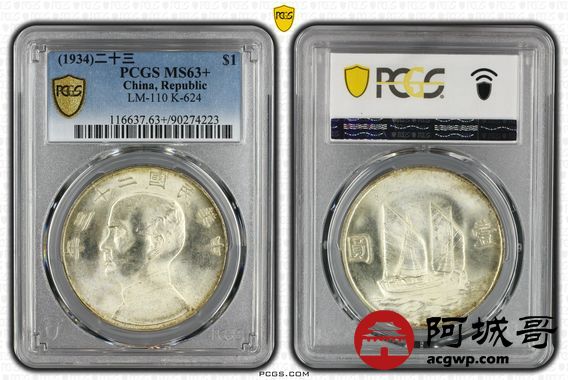 Lot:34 黄油原光 二十三年船洋 PCGS MS63+