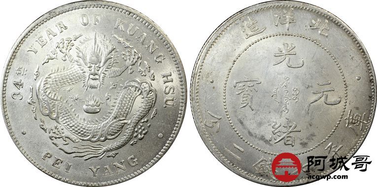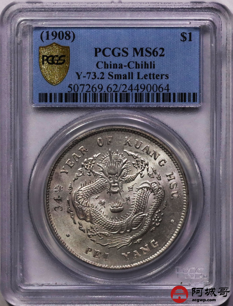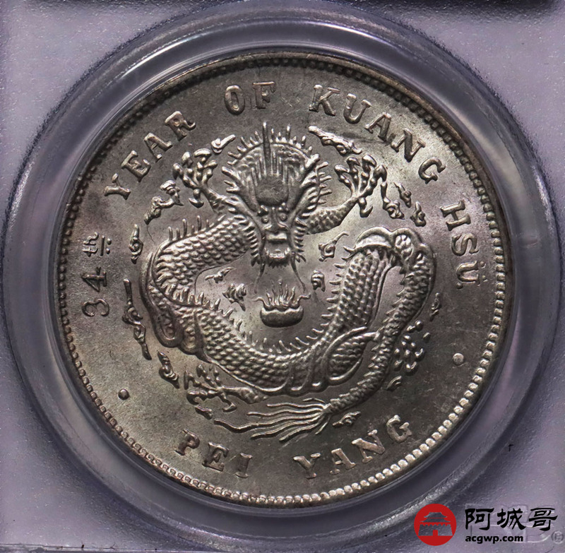 Lot:13 爆鳞 满打 银霜曝光 北洋34七钱二分小字版 PCGS MS62