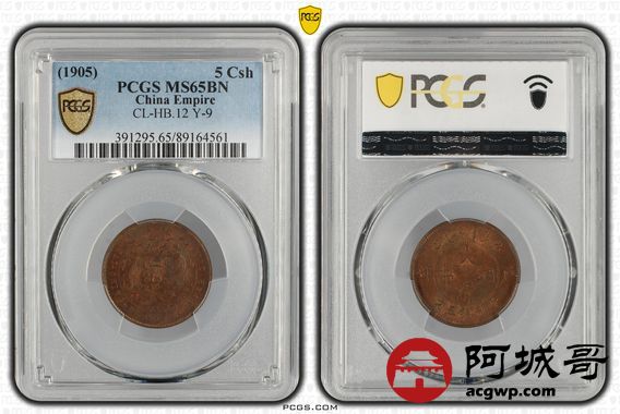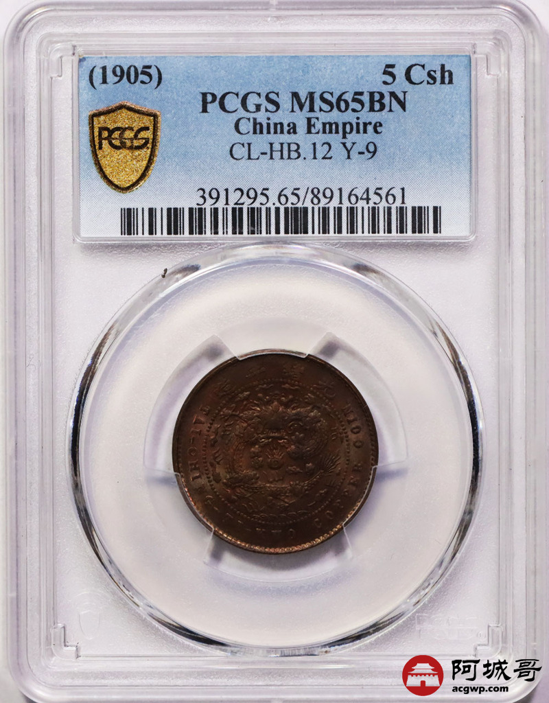 Lot:6 原光 乙巳大清户部铜币五文 PCGS MS65BN