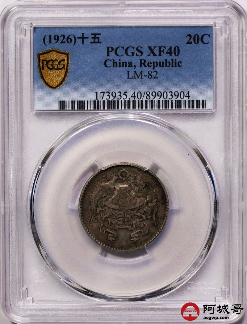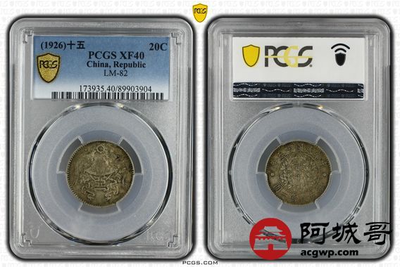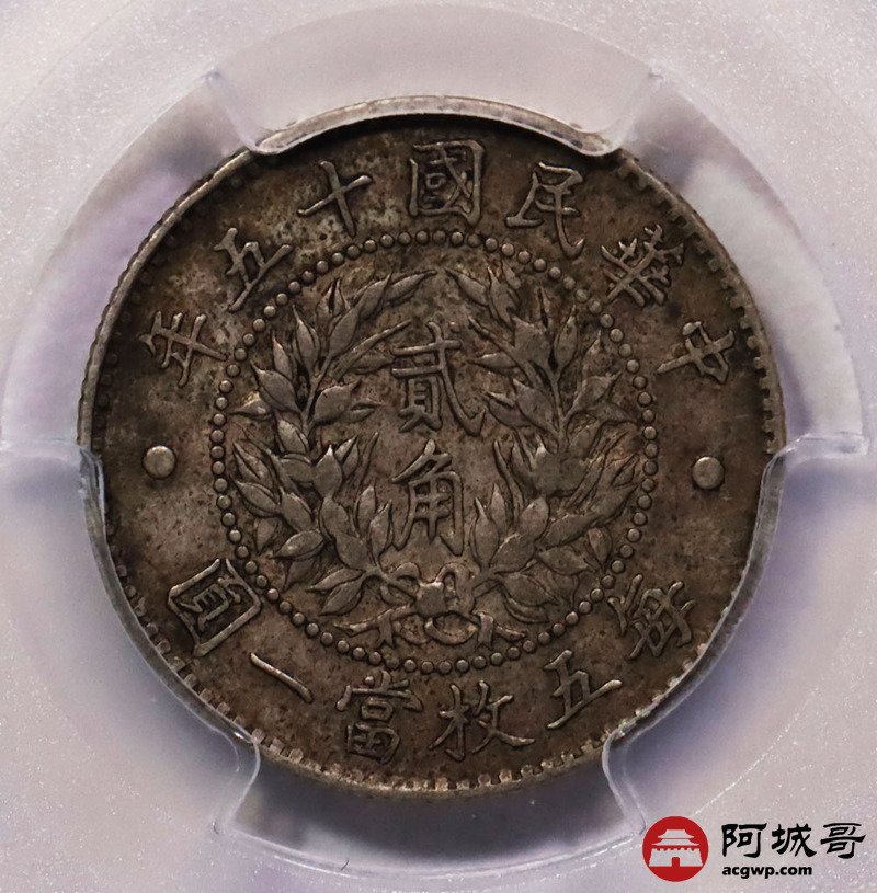Lot:8 原味老包浆 民国十五年龙凤贰角PCGS XF40
