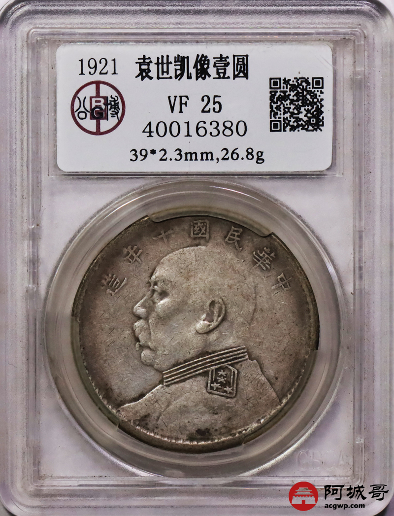 Lot:39 原味老包浆 十年大头壹圆 公博 VF25