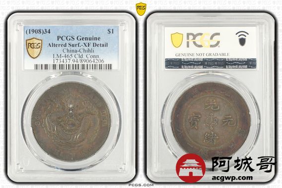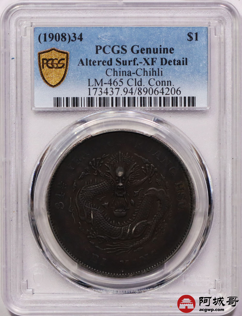 Lot:4 酱黑包浆 北洋34七钱二分 PCGS XF