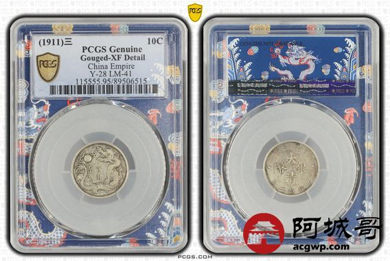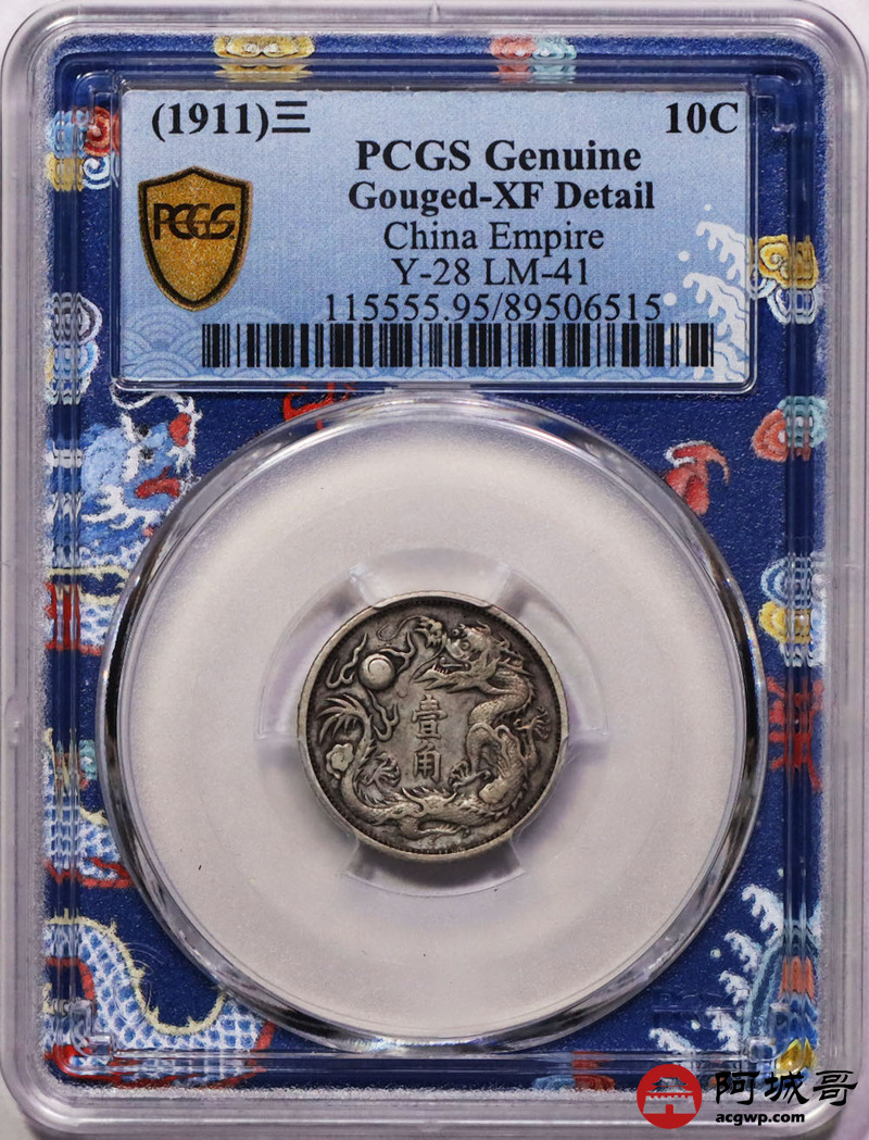 Lot:30 原味老包浆 大清立龙壹角 PCGS XF