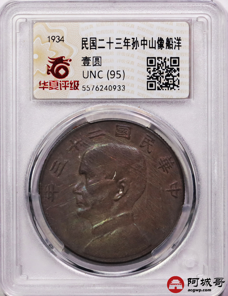Lot:38 咖色包浆 二十三年船洋 华夏评级 UNC95