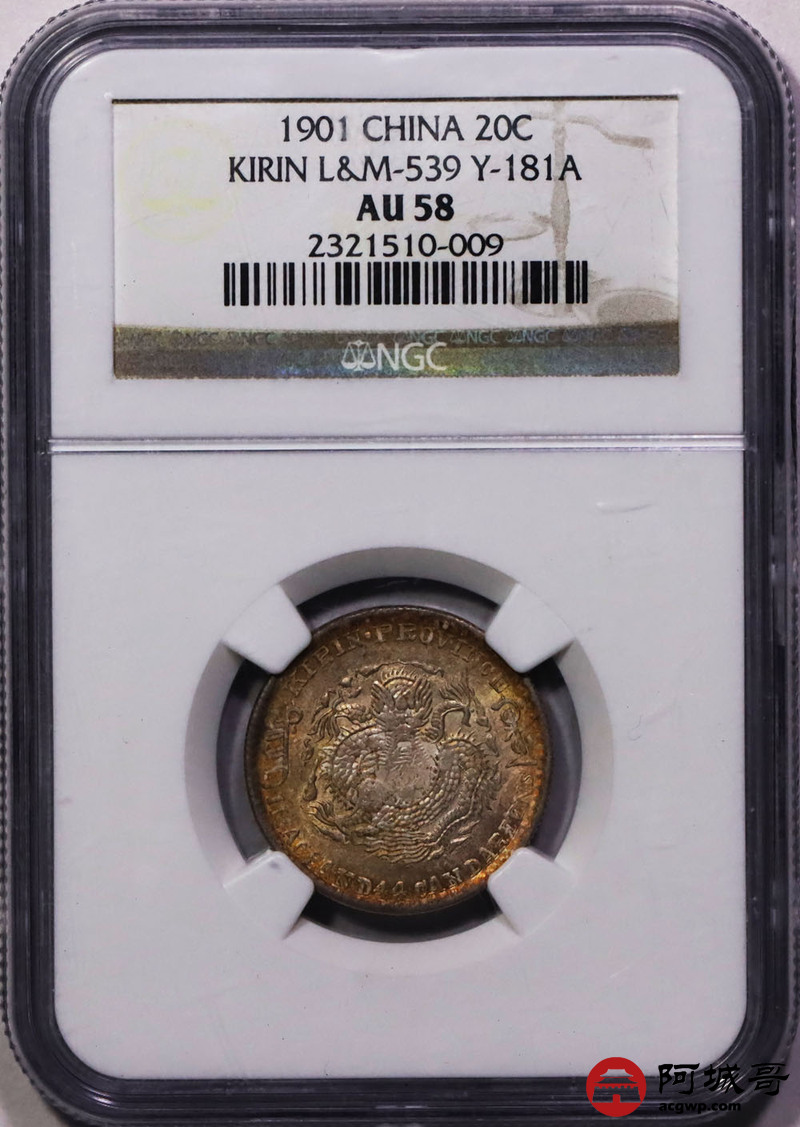 Lot:28 深打 满龙鳞 金彩转光 吉林辛丑一钱四分四厘 NGC AU58