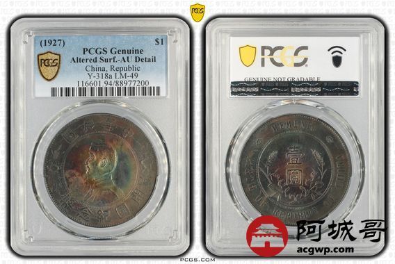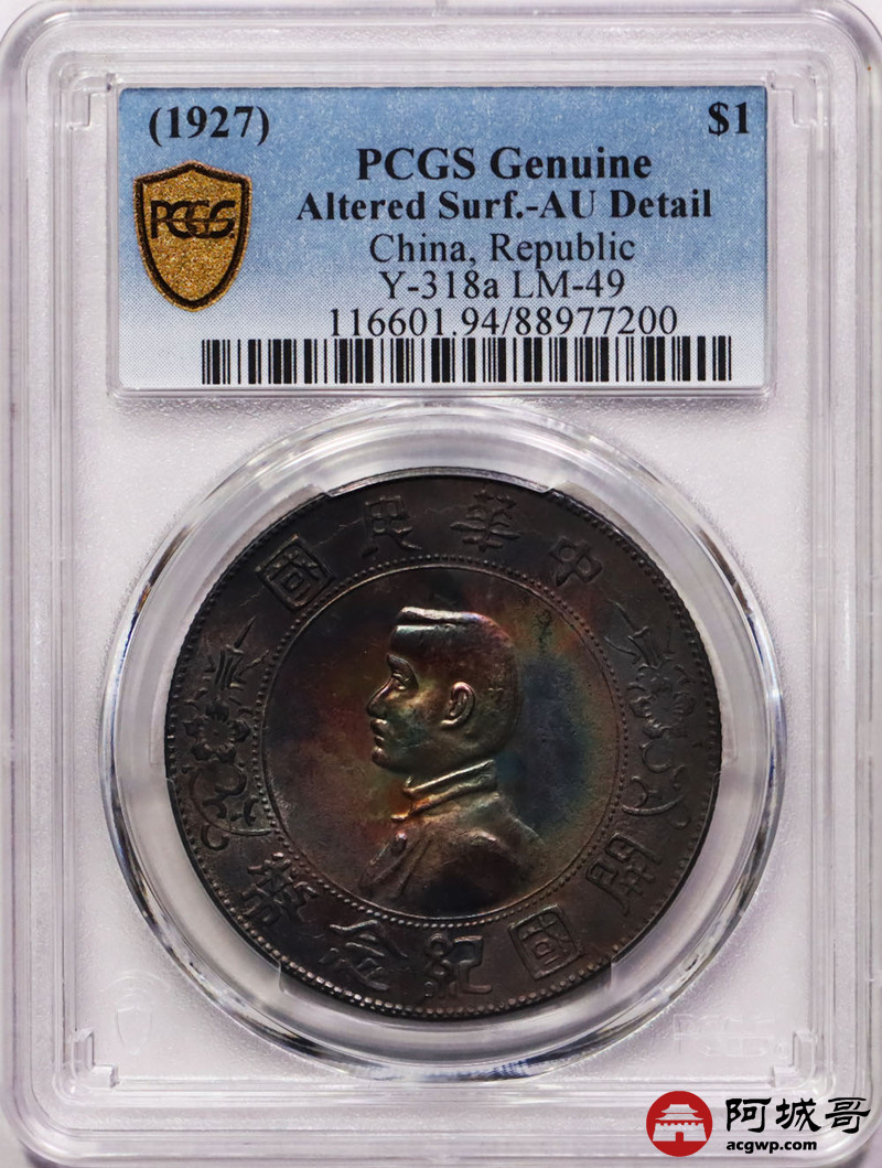 Lot:1 紫罗兰五彩 孙像小头壹圆 PCGS AU