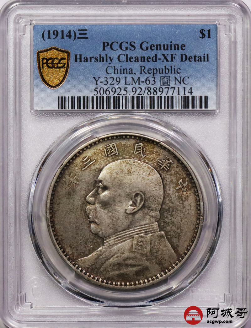 Lot:4 淡彩包浆 三年大头壹圆 PCGS XF