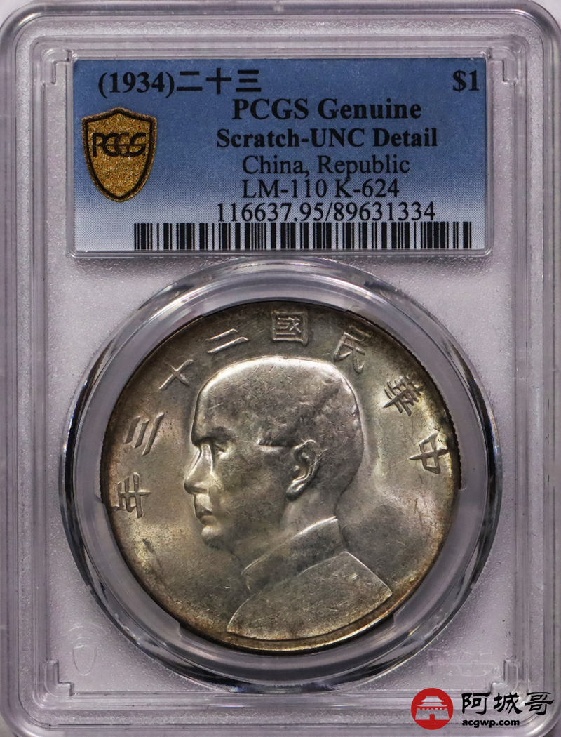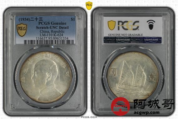 Lot:12 黄油转光 二十三年船洋 PCGS UNC