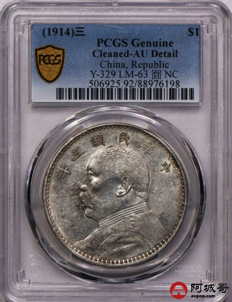 Lot:9 深打底光 三年大头壹圆 PCGS AU